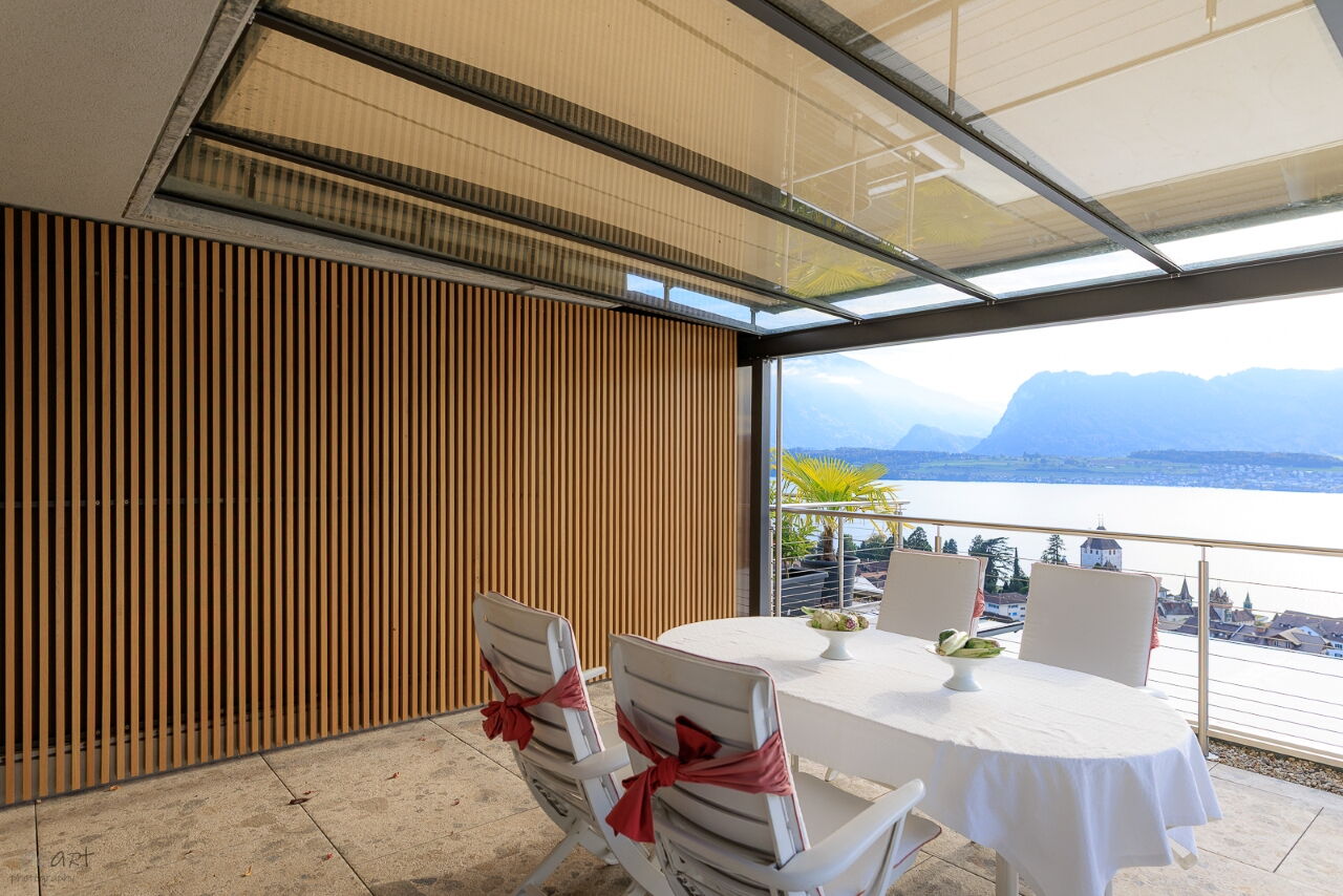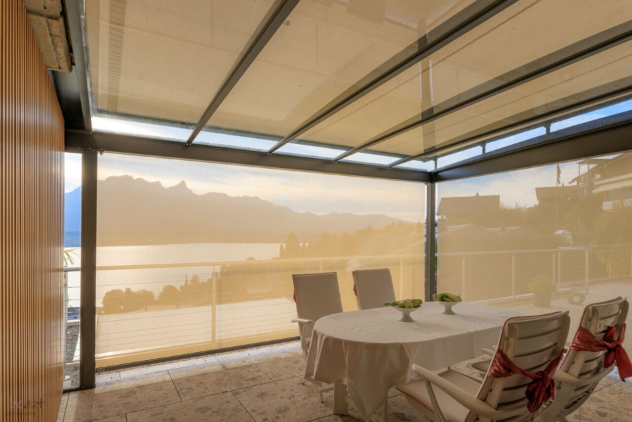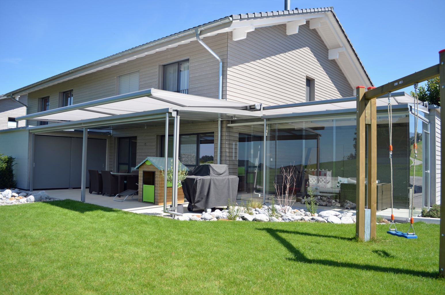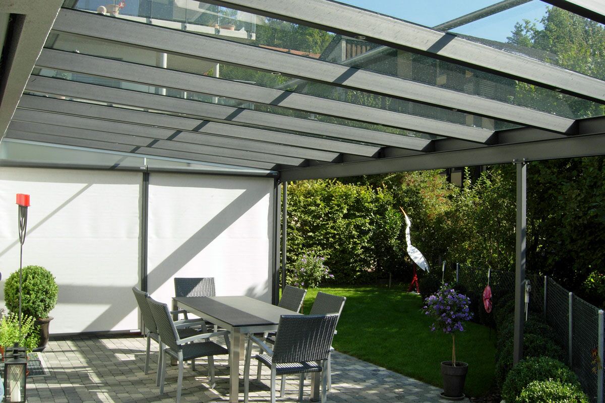 Ob Wintergarten, Sitzplatzverglasung, Balkonverglasung oder Terrasse — dass wir Menschen uns wohl fühlen, muss die Sonneneinstrahlung angemessen reguliert werden können.